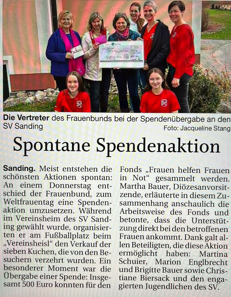 Korrektur zum MZ-Bericht:Die Spende ging von den Landfrauen an "Frauen in Not" |